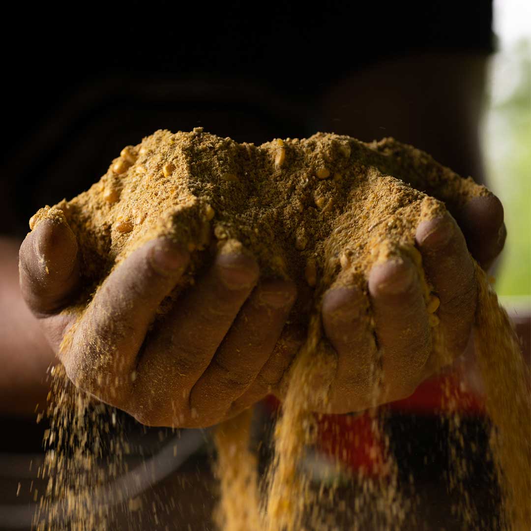 Whole & Cracked Corn, Distillers Grains, Premium Peanut Meal, Essential Minerals, Natural Peanut Flavor