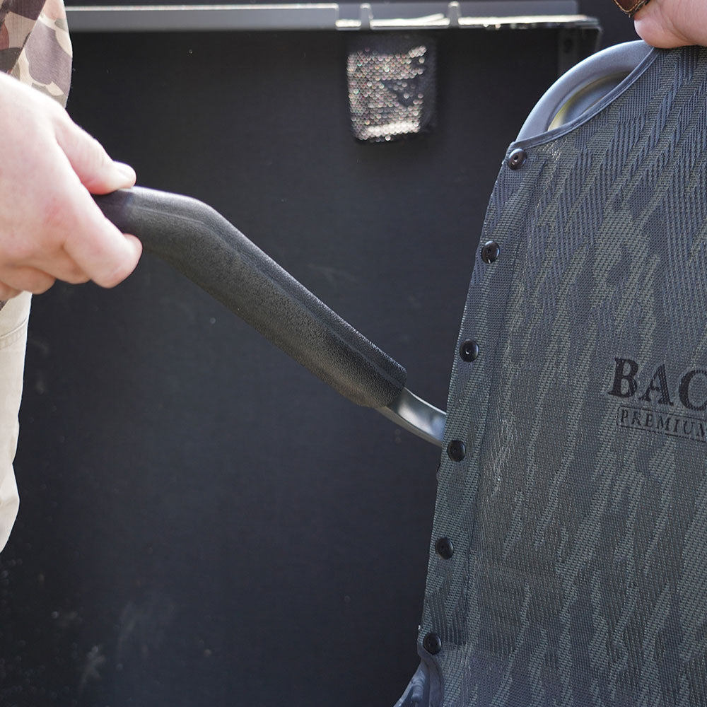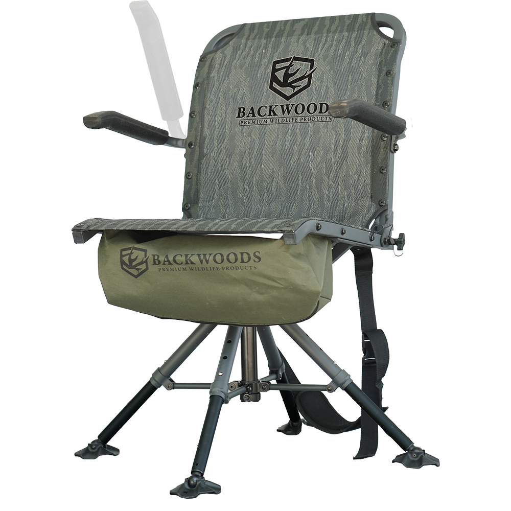 Welcome the Legacy™ HD Chair by Backwoods Premium Wildlife Products®, the epitome of durability and comfort for the discerning hunter. Crafted with an emphasis on overbuilding, this chair stands as a testament to our commitment to quality and reliability in the field. The wide seat, designed with an ergonomic focus, ensures unparalleled comfort during long waits, while its foldable armrests add an extra layer of convenience and versatility. Adorned with the distinctive Backwoods® bark pattern set against a robust black frame, this chair not only offers functionality but also blends seamlessly into the natural environment. For hunters seeking optimal positioning, the extendable legs offer easy height adjustments to suit any scenario, from elevated blinds to ground-level hides. Transport is a breeze, thanks to the innovative design that allows the legs to be removed and stored in a bag attached beneath the seat, making the journey to and from your hunting location as effortless as it is comfortable. Whether perched above the ground or settled among the foliage, the Legacy™ HD Chair is your perfect hunting companion, ensuring you remain poised and ready in utmost comfort.
