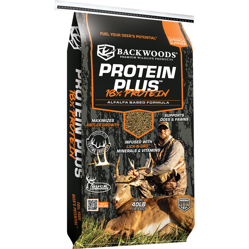 Backwoods® Protein Plus™ is the ultimate choice for enhancing herd health during the Spring and Summer months. Protein Plus™ is a high quality pellet with an 18% protein content. Designed to meet the nutritional needs of deer, this premium supplement provides a well-balanced diet that promotes optimal growth and overall well-being. Whether you're managing a herd or looking to attract more deer, Protein Plus™ is a great option for you. Give your herd the supplements that they need and deserve with Protein Plus™ and witness the excellent results it offers.